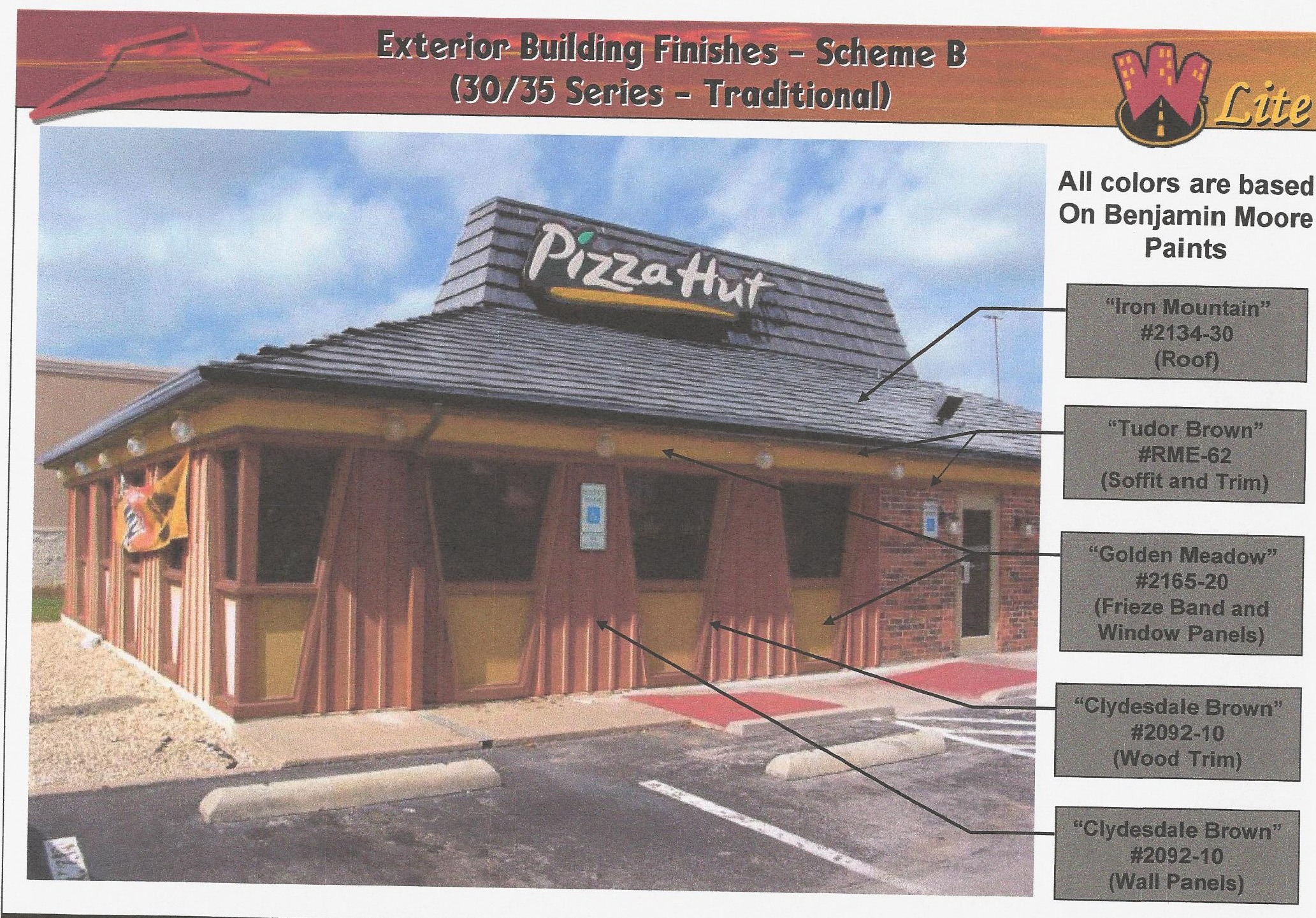 This guide shows remodel standards including paint codes and booth package requirements.